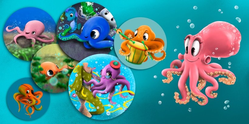 Character design is my favorite part of picture books! And I would like to share with you not only the newest member of my illustrated family, but also my progress over the years in octopus drawing.